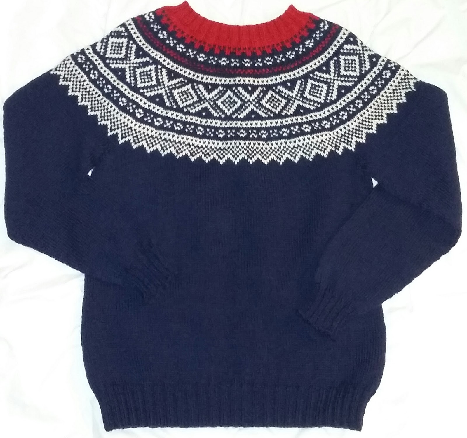 Mariusgenser i bryllupsgave kan være en fin ting å gi. Mange ønsker seg marius og det å få noe hjemmestrikket kan mange sette stor pris på. Dette tenkte iallefall en kollega av meg, så da datteren hennes skulle gifte seg ønsket hun å gi marius til både brud og brudgom. Begge genserne er i størrelse medium.