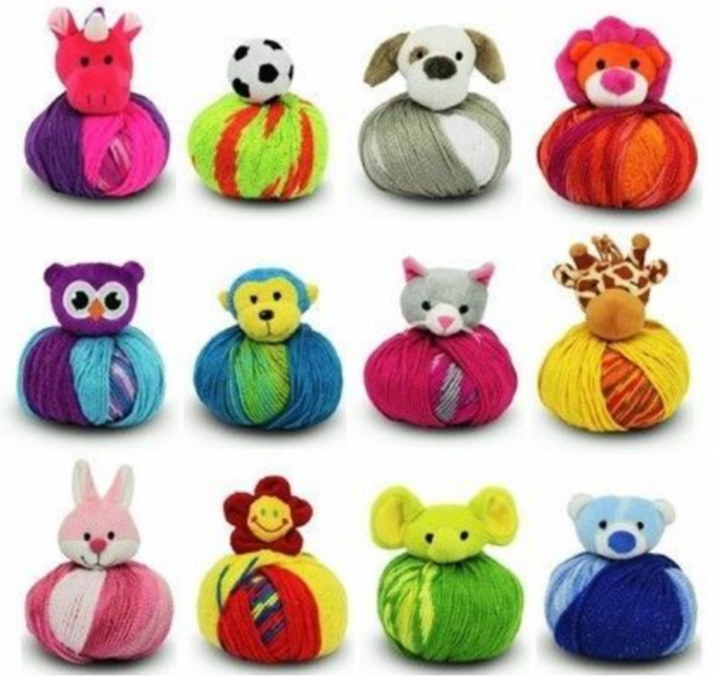 Garnet er tilpasset fargen til hodet av det kosedyret som du monterer på toppen av lua. Som her med min sjiraff, derfor er denne luen i fine gule, oransje og røde toner.